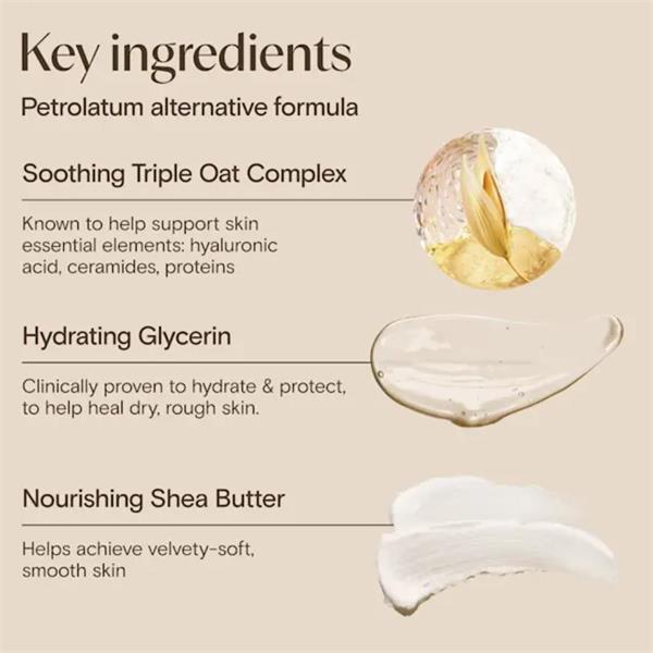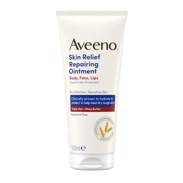 Aveeno® Skin Relief Repairing Ointment is formulated to instantly soothe and protect dry to very dry, rough skin, while intensely moisturising for 72 hours. Helping to restore the skin's moisture barrier for healthy looking, more resilient skin from first use. Formula with soothing Triple Oat Complex, hydrating glycerine and nourishing shea butter intensely moisturises to help repair targeted areas and relieve dry to very dry, rough skin on the body, face and lips.