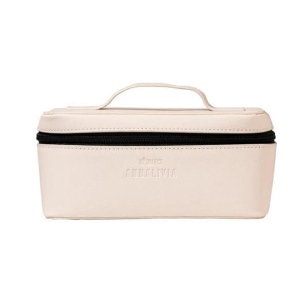 Crafted from durable, wipe-clean material, this elegant bag is designed to hold your full Annalivia skincare collection. It features a spacious main compartment and an interior zip pocket for smaller items.