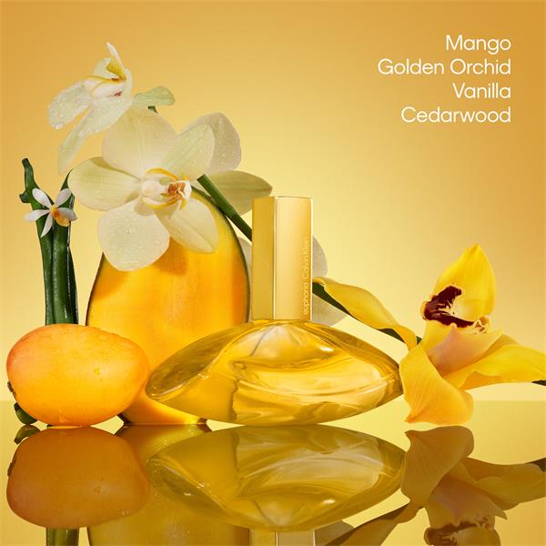 Notes of mango, golden orchid, vanilla, and cedarwood