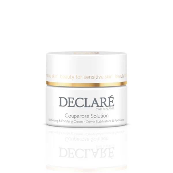 Declare Couperose solution strengthens the skin's functions and reduces redness. The unique composition of this highly effective skincare strengthens the skin‘s functions and reduces the appearance of existing redness. At the same time, it is provided intensively with valuable moisture and gently nourished with soft oils. For perfectly strengthened, well cared-for skin and a smooth, relaxed complexion.