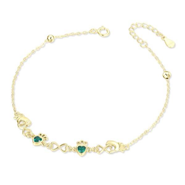 This gold plated sterling silver chain bracelet with double emerald Claddagh design had been beautifully crafted.