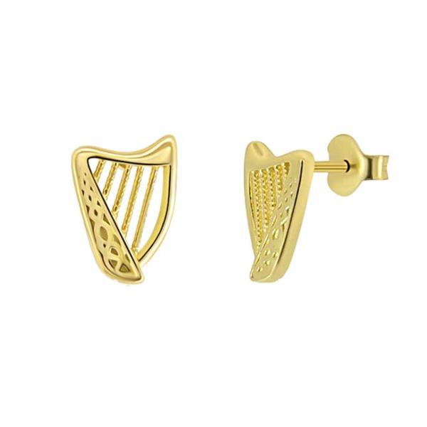 A pair of yellow gold plated sterling silver stud earrings featuring the traditional Irish Harp.