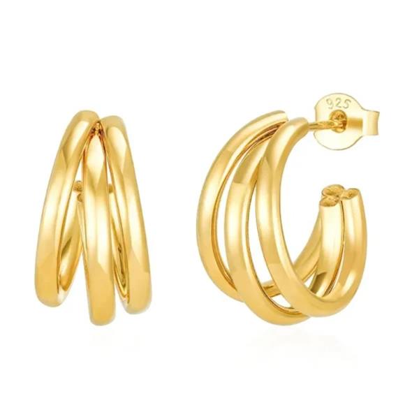 These yellow gold plated sterling silver 925 stud earrings have been designed to give the look of 3 seperate hoops.