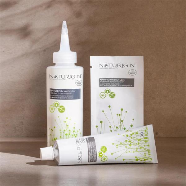 NATURIGIN hair colours are a permanent solution and cover grey hair up to 100%. The colour is easy to apply and it only takes 30-45 minutes. The hair colours have a professional quality and work for all hair types. Inside a NATURIGIN hair colour box is 60 ml. ‘Activator’, 40 ml. ‘Colour Cream’, safety gloves and last but not least 15 ml. ‘After Colour Treatment’, which makes the colour last longer. NATURIGIN hair colour is 100% ammonia, SLS and paraben-free and therefore has a mild and pleasant fragrance.