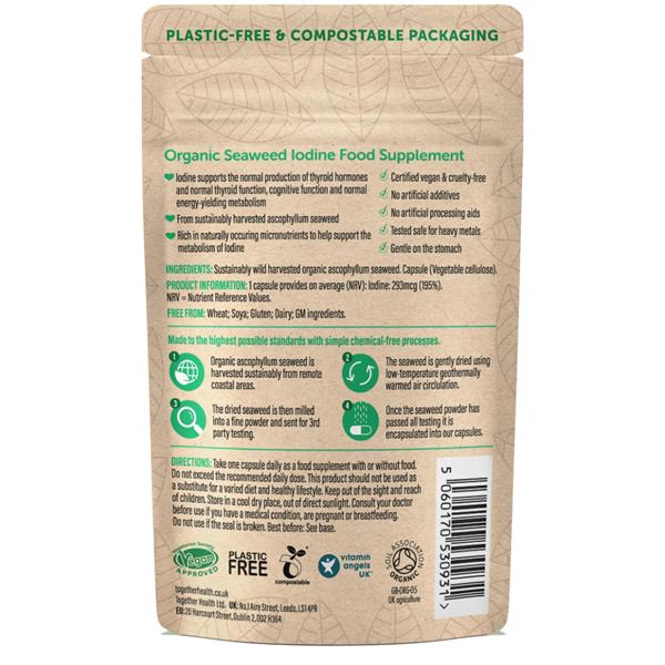 Our iodine is not just good for you; it's good for the planet too. Committed to sustainability, we ensure that our seaweed is harvested from remote, pristine areas in Britain and the Nordic region. Additionally, our product is Soil Association organic certified, providing peace of mind regarding quality and environmental responsibility.